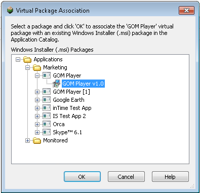 - Select the virtual package’s source Windows Installer package and click OK. The virtual package is now associated with the selected Windows Installer package.