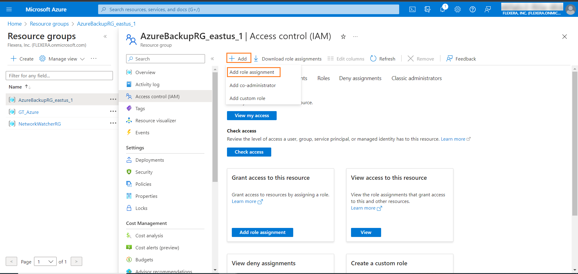 - Click on Add and then select Add role assignment from the list.