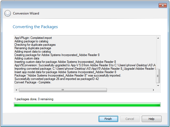 2. Click Next to begin the conversion. The Converting the Packages panel opens.