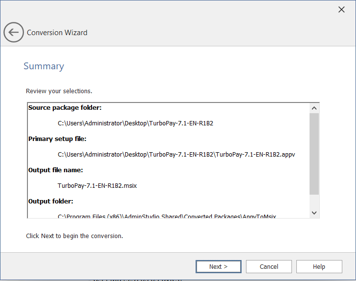 - Set App-V to MSIX conversion options, as described in Setting App-V to MSIX Conversion Options.