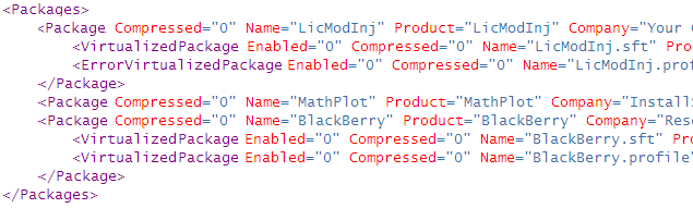 Each <Package> element can have multiple <RepackagedPackage>, <VirtualizedPackage>, and <ErrorVirtualizedPackage> elements.